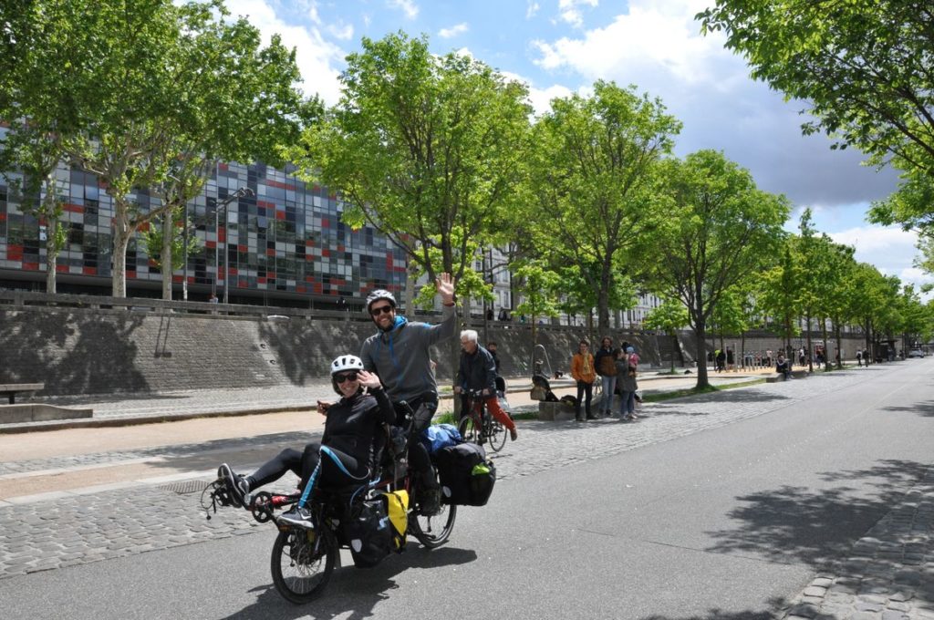 Nous sommes le samedi 4 mai, il est 12h30 quand nous descendons de l’appartement. À peine les premiers coups de pédales passés que nous prenons une belle averse sur la tête, confirmant les prévisions météo de la semaine humide qui s’annonce.