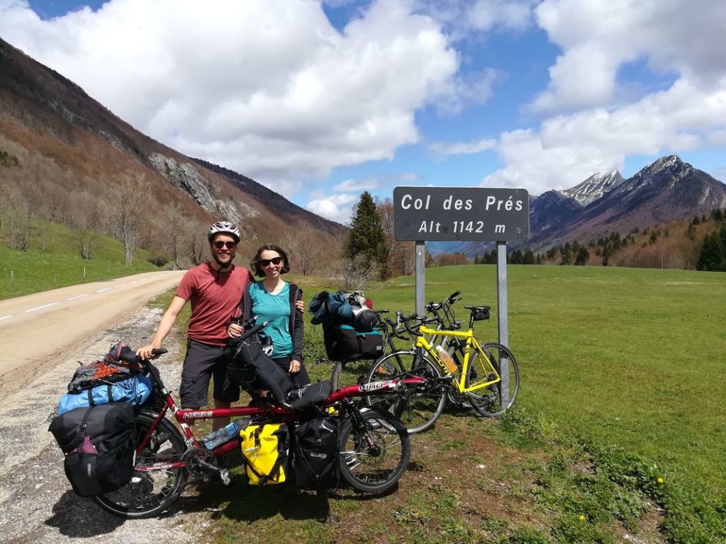 Première journée « OFF » le lendemain, l’occasion notamment de faire un peu de mécanique sur Chico. Dans l’après-midi nous quittons la famille pour rejoindre nos amis Aline, Nico et Tim. La petite troupe nous accompagnera dans notre ascension des Bauges par le Col des Prés, notre premier « gros col de montagne » +1000 mètres. Mention spéciale pour Antonine qui nous a offert le café à Thoiry !