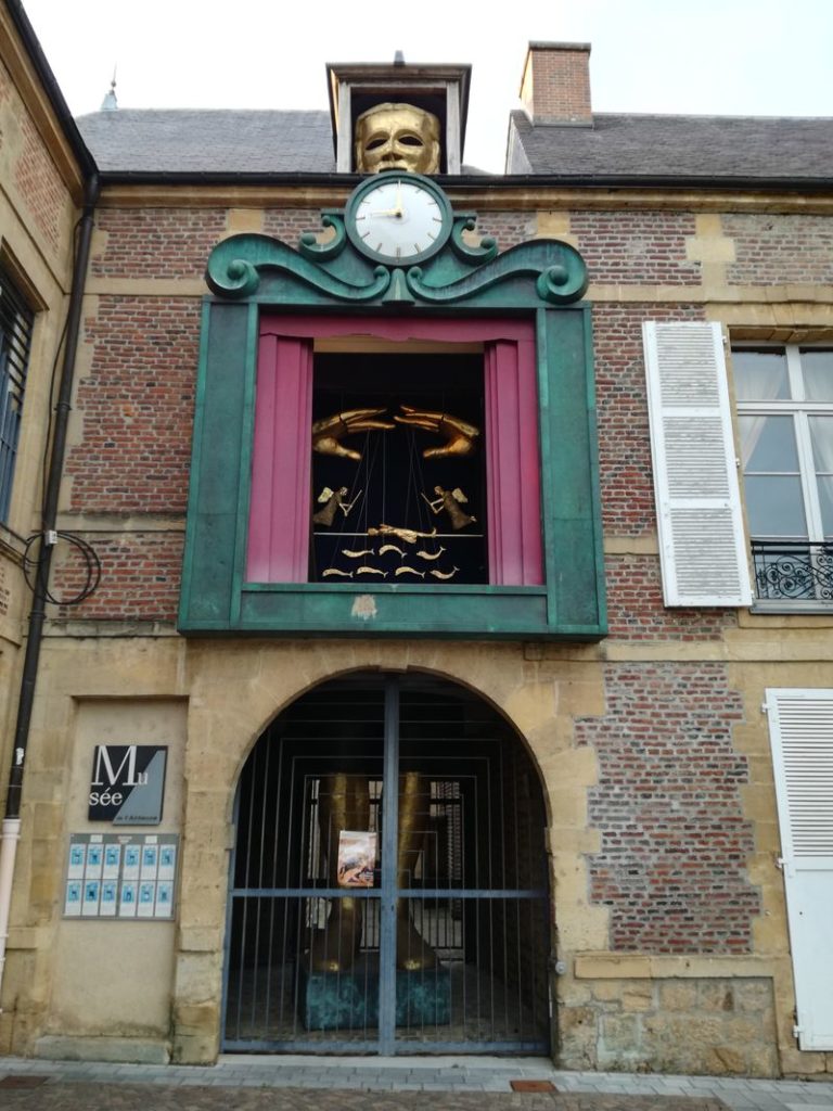 Le saviez-vous ?! A Charleville Mézières se trouve l’école internationale de marionnettes ! L’école se trouve dans un bâtiment ancien sur une place charmante elle aussi. Mais le plus sympa c’est que sur la façade de se bâtiment se trouve une installation de spectacle permanente : tous les jours de 10h à 21h, chaque heure, l’automate se met en marche pour quelques minutes. Un géant doré active des personnages pour raconter la Légende des Quatre fils Aymon. Pour information l’histoire est racontée d’une traite tous les samedi.