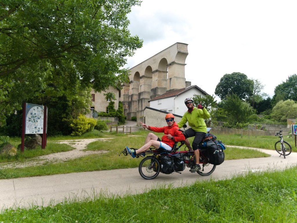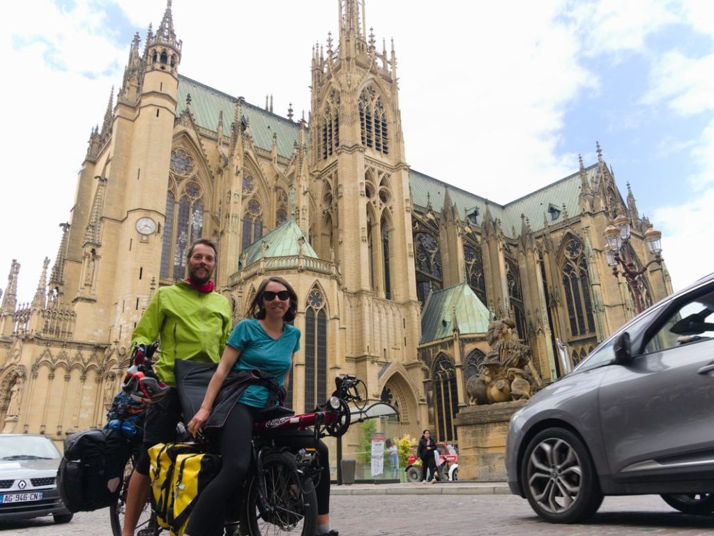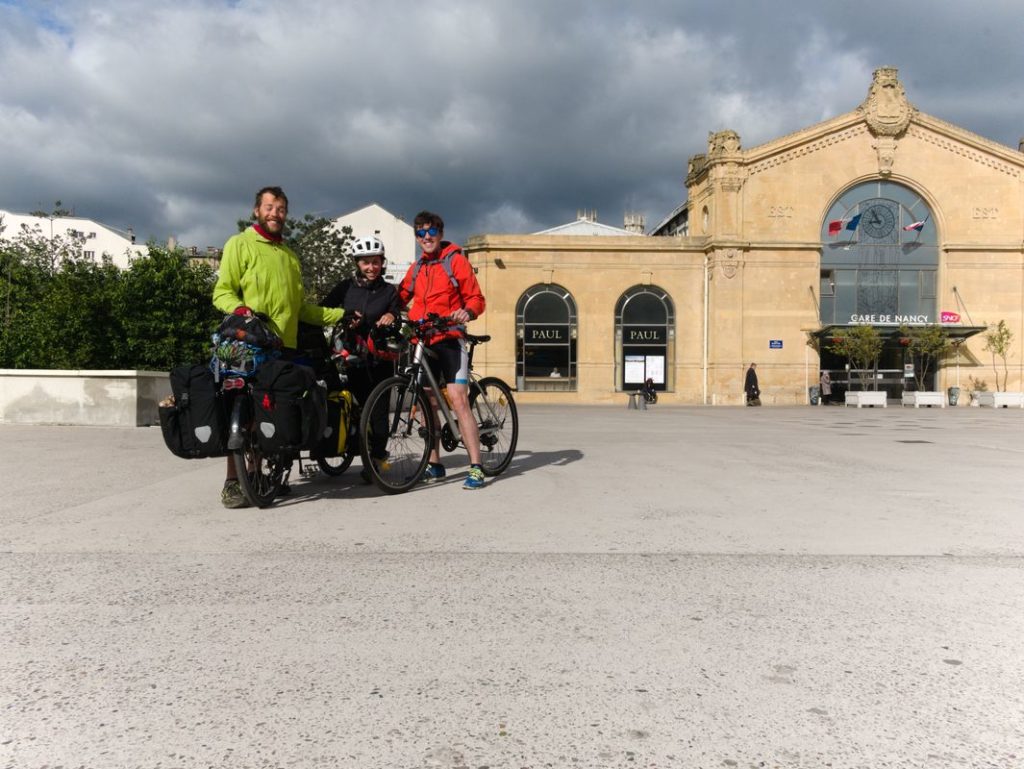 En arrivant à Nancy, voilà 5 jours que nous roulons tous les jours entre 40 et 80 km par jour. Malgré les jambes lourdes, pas de break ! Nous repartons le lendemain de notre arrivée avec notre copain Colin qui nous a rejoint par le train pour rallier Metz en vélo. Ce jour là nous avons le vent dans le dos, on s’envole !