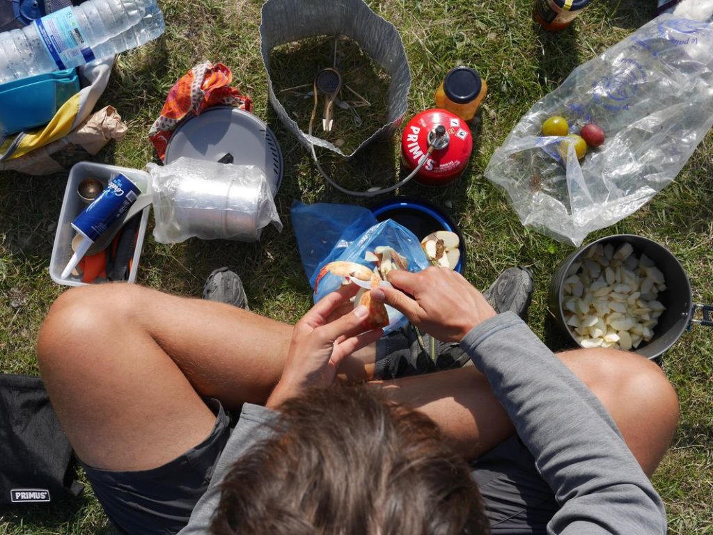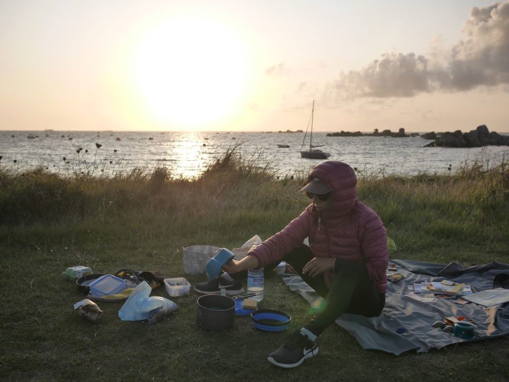 La fin de journée se passe au bord de l’océan dans une petite baie calme où Kévin nous prépare une compote sur le réchaud avec les pommes de Douarnenez.