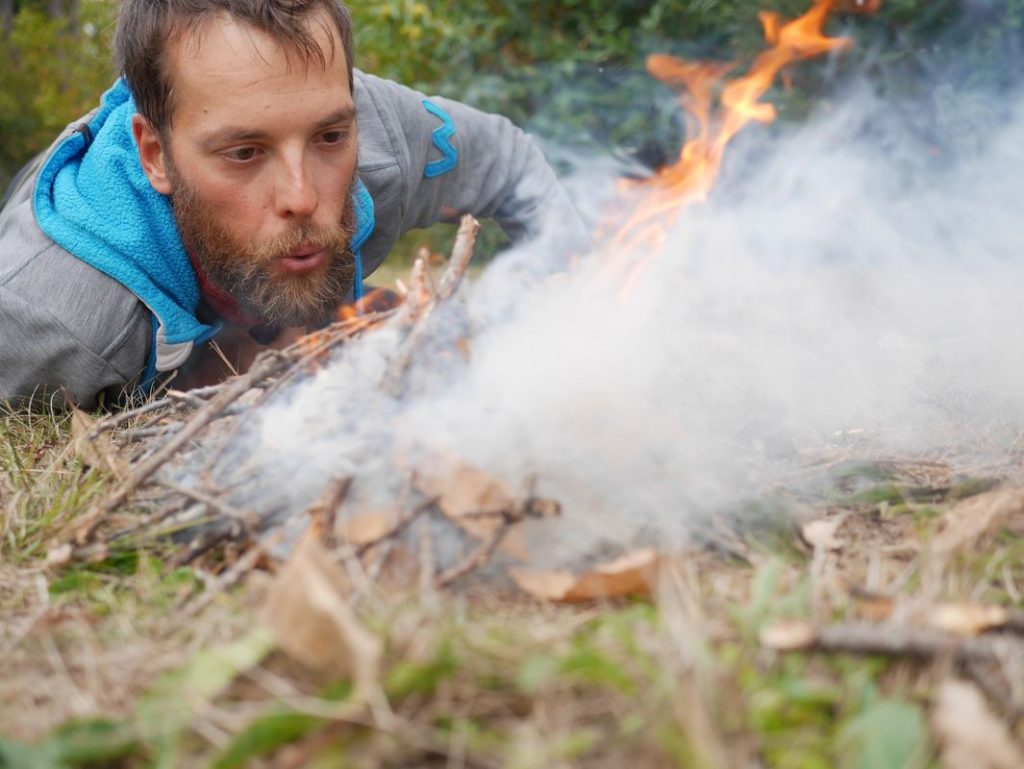 Traversée du Lot et du Périgord, départements complètement inconnus pour nous. C’est un réel plaisir de découvrir ces zones hors saison. Les villages sont très beaux, et l’alternance de rivières, de forêts et de falaises nous plaît énormément. Le tout dégage un sentiment de bien vivre évident. Nous passons par le château de Biron. Le paysage visuel est rempli de forêts et de chevreuils gambadant gaiement, le paysage sonore est ponctué de coups de fusils plus ou moins rapprochés. Les panneaux «chasse gardée» alternent avec les panneaux «chasse interdite» ou «zone de reproduction» (pour les chevreuils en rûte et sachant lire). Afin d’éviter un coup de fusil nous choisissons d’établir notre bivouac dans un «parking de chasse». Il n’y a personne et on se dit que les chasseurs ne tireront pas sur leurs bagnoles ! Mine de rien on se meule un peu et on en profite pour faire notre premier feu de camp.